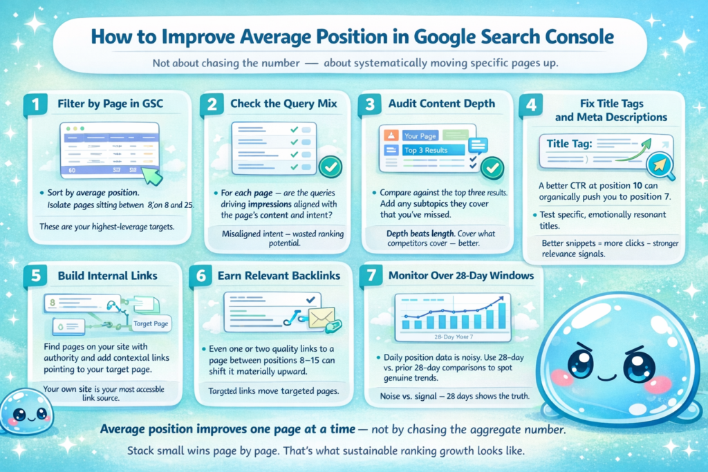 What is a good average position in google search console improves not by focusing on the aggregate metric but by stacking small wins page by page.